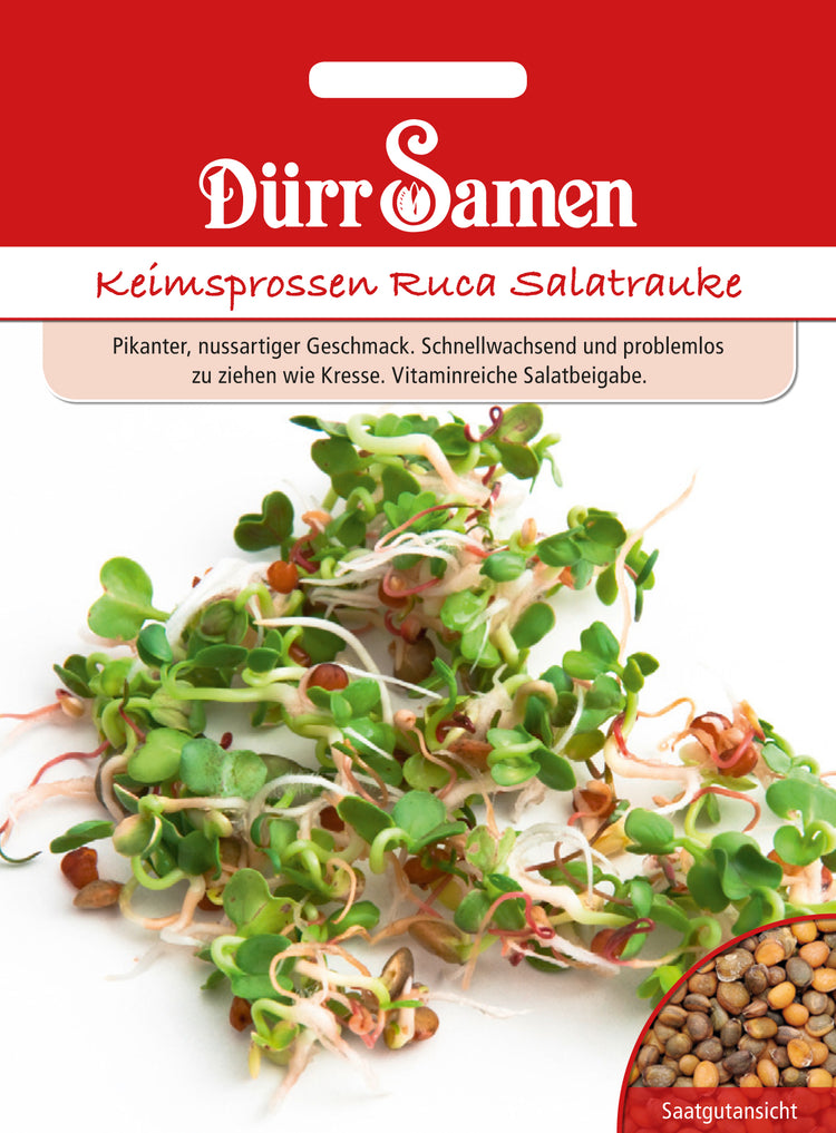 Bio-Keimsprossen Ruca-Salatrauke haben einen nussartig-pikanten Geschmack. Sehr vielseitig als Beigabe und als Brotbelag verwendbar. Vitalisierend, für eine ausgewogene und bewusste Ernährung.
