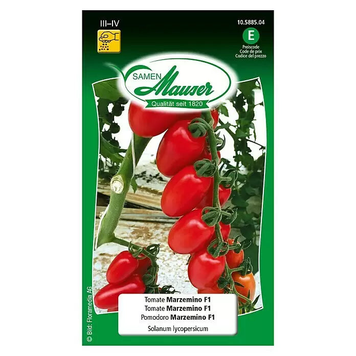 Die Sorte „Marzemino F1“ gehört zu den Mini-San-Marzano-Tomaten und bildet Früchte mit einem Gewicht von etwa 30–35 g. Sie überzeugt durch ihre Widerstandsfähigkeit und einen besonders hohen Ertrag. Zudem ist sie resistent gegen Wurzelgallenälchen, Verticillium- und Fusariumwelke sowie gegen das Tomato Yellow Leaf Curl Virus. Dank ihres aromatischen Geschmacks ist die „Marzemino F1“ vielseitig in der Küche einsetzbar.